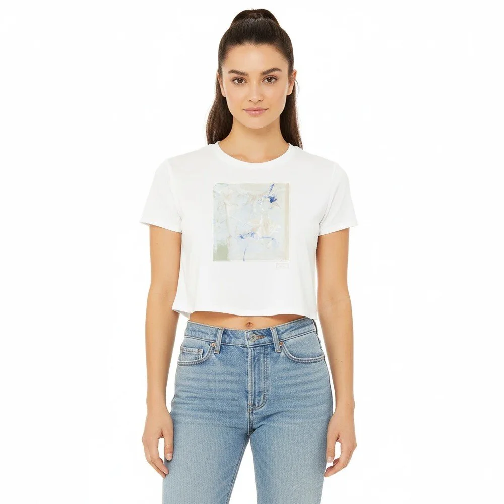 A modern cropped tee featuring original artwork in a soft, peaceful palette. Designed to feel light and effortless, this piece pairs a relaxed cropped silhouette with breathable fabric that moves comfortably with you.
